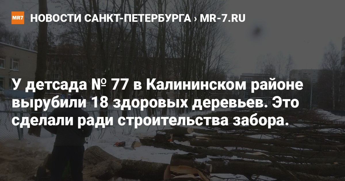 У детского сада № 77 в Калининском районе Петербурге спилили 18 здоровых деревьев. Как поделилась с нами местная жительница, заказчиком работ выступило само учреждение.