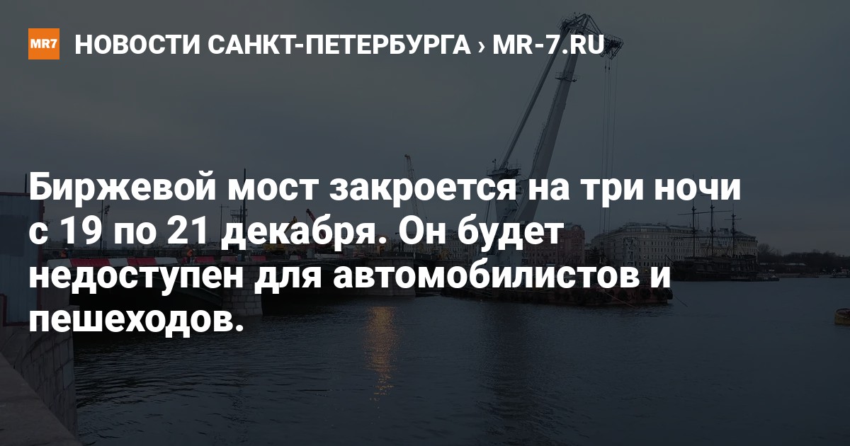 Биржевой мост через Малую Неву закроют для движения транспорта и пешеходов по ночам с 19 по 21 декабря, предупредили в пресс-службе СПб ГБУ «Мостотрест».