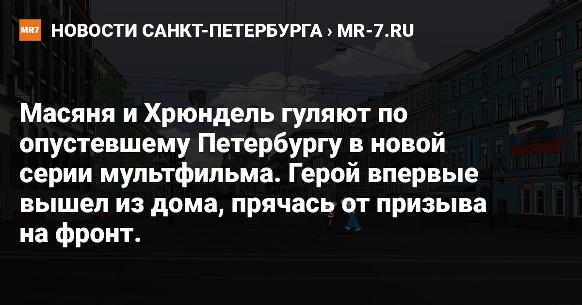 В новом эпизоде главная героиня Масяня и ее бывший муж Хрюндель ходят по опустевшему Петербургу. Герой в синем костюме три месяца сидел в шкафу и читал Жан-Поля Сартра, скрываясь от «частичной мобилизации», и вот наконец вышел наружу.