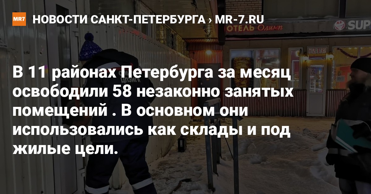 За месяц в Петербурге освободили 58 городских помещений, которые занимались без необходимых документов. Рейды прошли в 11 районах города: в Центральном, Петроградском, Василеостровском, Адмиралтейском, Выборгском, Пушкинском, Невском, Московском, Красносельском, Кировском и Красногвардейском, сообщает пресс-служба комитета по контролю за имуществом.