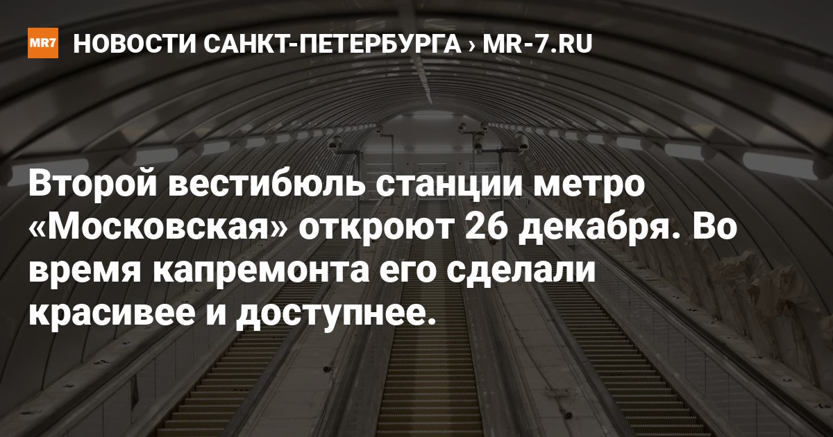 Второй вестибюль станции петербургского метро «Московская» откроют после капитального ремонта в понедельник, 26 декабря. Вице-губернатор Кирилл Поляков посетил станцию перед ее открытием и рассказал о ходе работ.