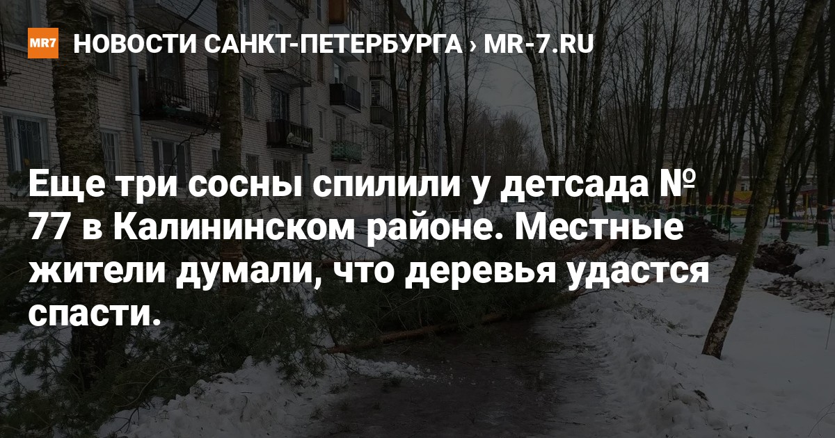 Три сосны у детского сада № 77 в Калининском районе Петербурга, которые хотели сохранить местные жители, спилили. Фотографиями поделились на странице муниципалитета «Гражданка» 22 декабря.
