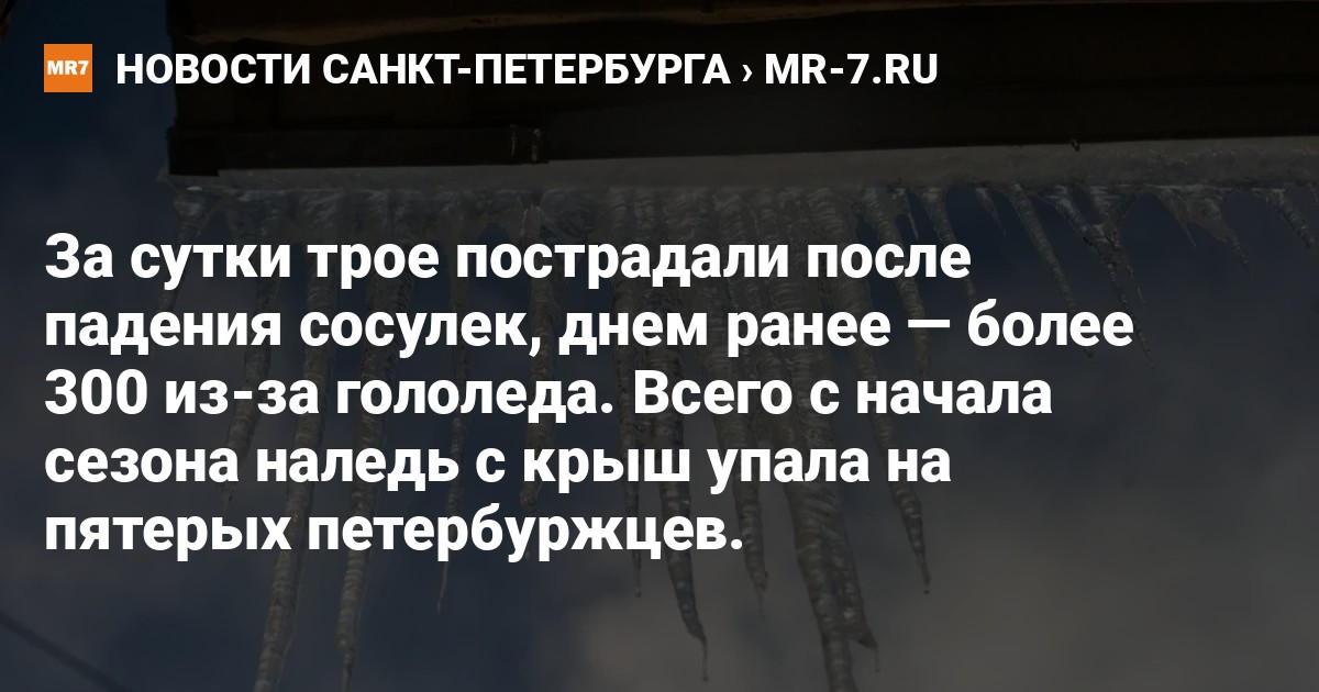 Жители Петербурга продолжают страдать из-за «ледяной» зимы. За последние сутки три человека пострадали из-за упавших с крыш сосулек.