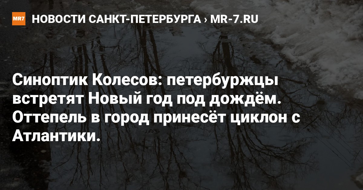 По словам Колесова, несмотря на то, что до Нового года ещё шесть дней, с большой вероятностью Петербург встретит праздники с дождём. Синоптик говорит, что надеяться можно только на чудо: вдруг между циклонами проскочит какой-то барический гребень, и погода изменится.