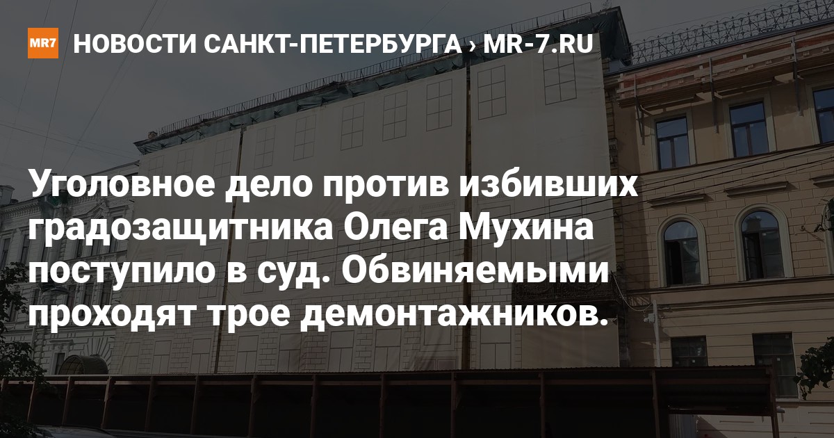 Уголовное дело в отношении напавших в августе на градозащитника Олега Мухина, поступило в суд, сообщает 28 декабря градозащитный пресс-центр Петербурга.