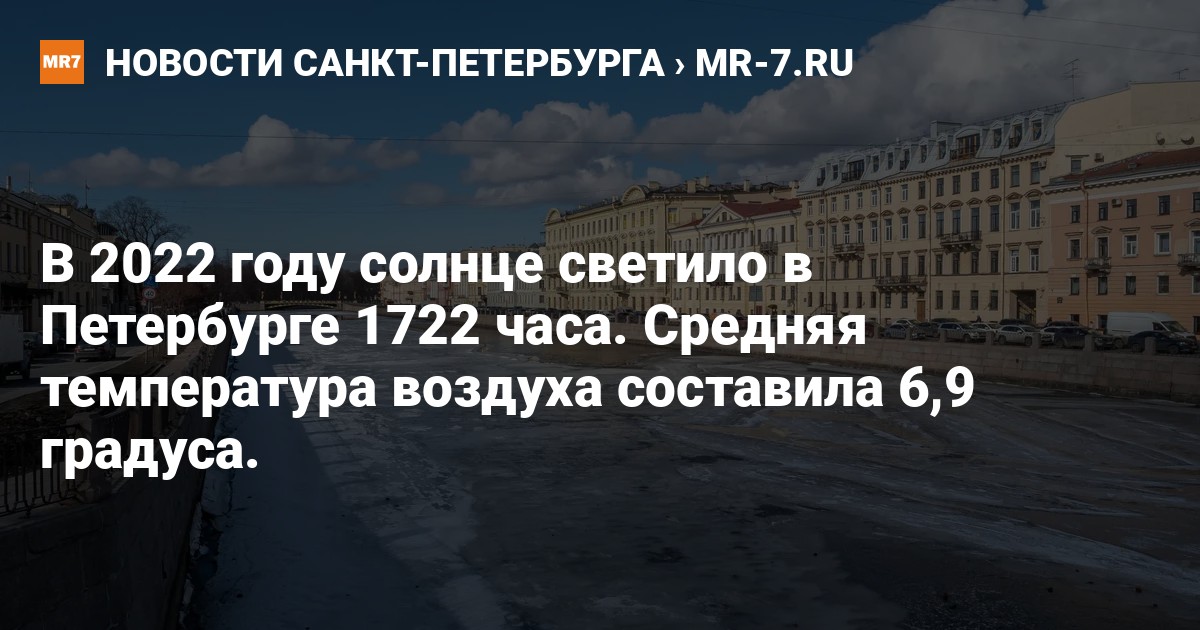 В 2022 году солнце светило в Петербурге 1721,6 часа, что равняется 223 дням. Об этом рассказал главный специалист городского Гидрометцентра Александр Колесов на пресс-конференции в «Интерфаксе».