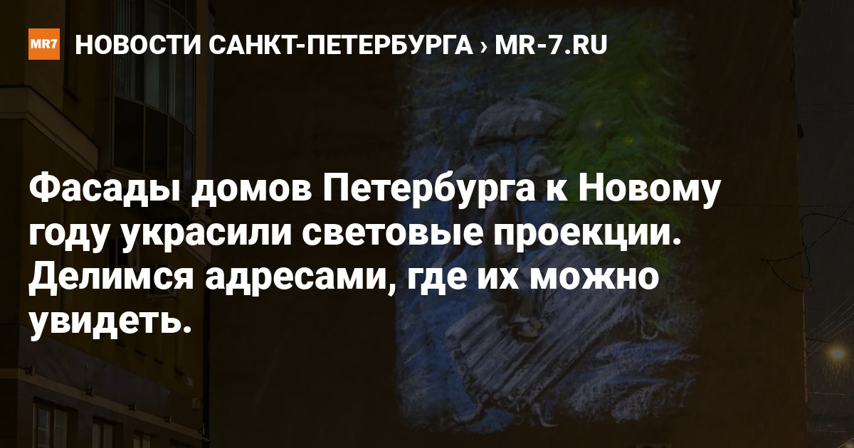 В преддверии Нового года на фасадах домов в Петербурге разместили тематические световые инсталляции. В пресс-службе «Ленсвета» поделились адресами, где можно увидеть проекции.