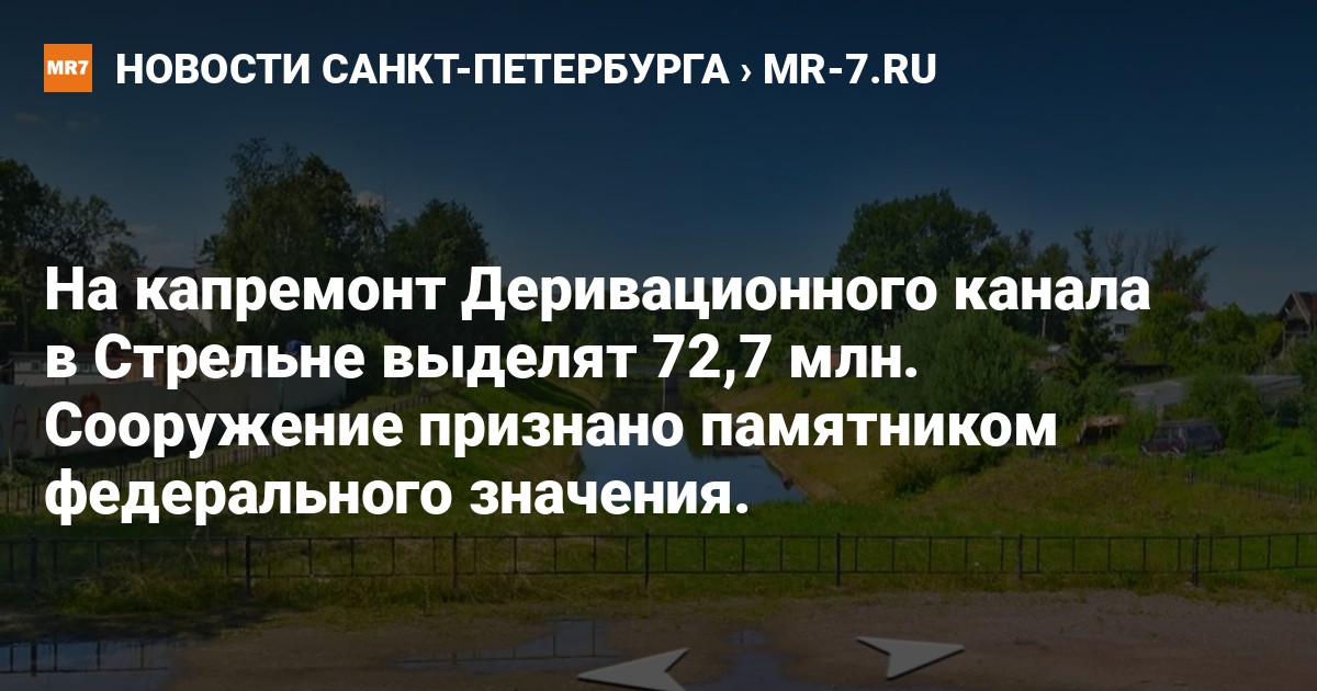 В Петербурге капитально отремонтируют Деривационный канал, признанный объектом культурного наследия федерального значения как элемент ансамбля водоподводящей системы парков Стрельны, сообщает RosTender.info.