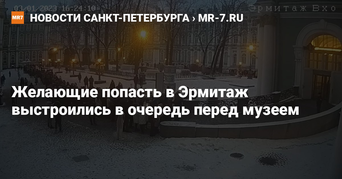 Днём 3 января перед парадным входом в Эрмитаж выстроилась огромная очередь из желающих попасть в музей. Это можно увидеть в режиме реального времени на онлайн-веб-камере, расположенной в Большом дворе Зимнего дворца.