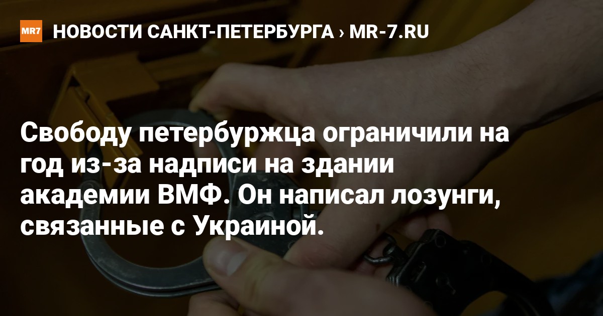 Сергея Васильева приговорили к году ограничения свободы из-за надписей на стенах здания Военно-морской академии имени адмирала флота Н.Г. Кузнецова на Ушаковской набережной, сообщается на сайте суда Приморского района Петербурга.