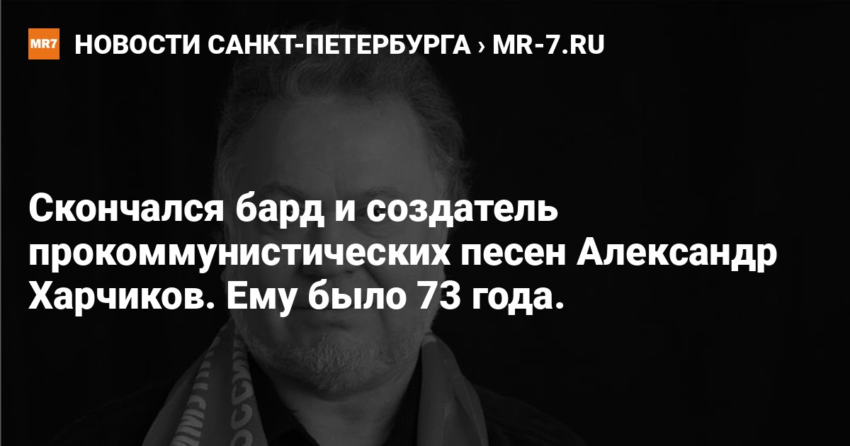 Накануне, 7 января, в возрасте 73 лет скончался бард и создатель прокоммунистических песен Александр Харчиков, сообщается на официальном сайте партии КПРФ. Причина смерти пока неизвестна.