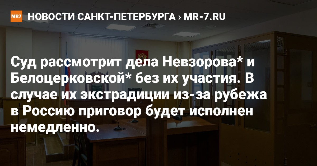 Суд рассмотрит дела «о фейках об армии» (ст. 207.3 УК РФ) в отношении журналистов Вероники Белоцерковской* и Александра Невзорова* заочно — без их участия. Об этом сообщил юрист Павел Чиков.