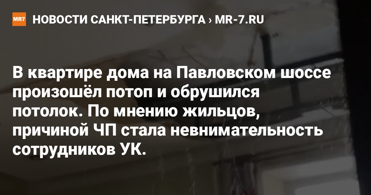Инцидент произошёл в доме № 29 по Павловскому шоссе, за который отвечает ЖКС № 1 Пушкинского района. По словам местных жителей, причиной потопа стала невнимательность работников УК.