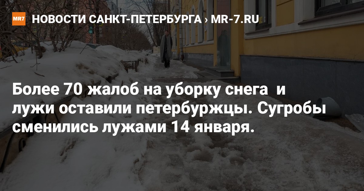 В субботу, 14 января, петербуржцы активно жалуются на уборку дорог и тротуаров. На сайте «Наш Петербург» за день оставили более 70 заявок с просьбами об уборке территории от снега.