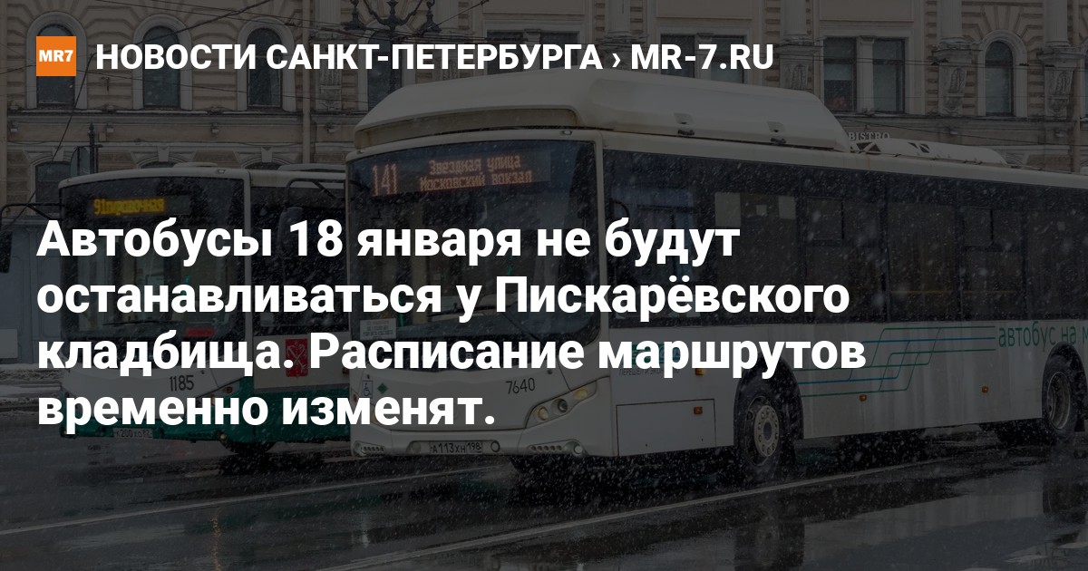 Кроме того, с 10:00 до 13:00 автобусные маршруты №№ 80, 123, 138, 178 не будут останавливаться у Пискарёвского кладбища в направлении движения от Пискарёвского к Гражданскому проспекту.