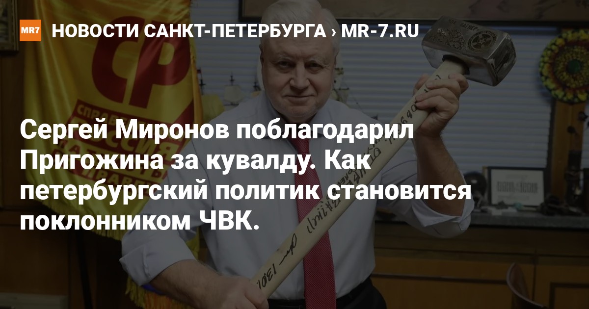 «Благодарю Евгения Пригожина за подарок. Ещё несколько лет назад, находясь в Санкт-Петербурге, осознал, насколько это полезный инструмент», — написал в своём Тelegram-канале 20 января лидер фракции «Справедливая России — За правду» Сергей Миронов.