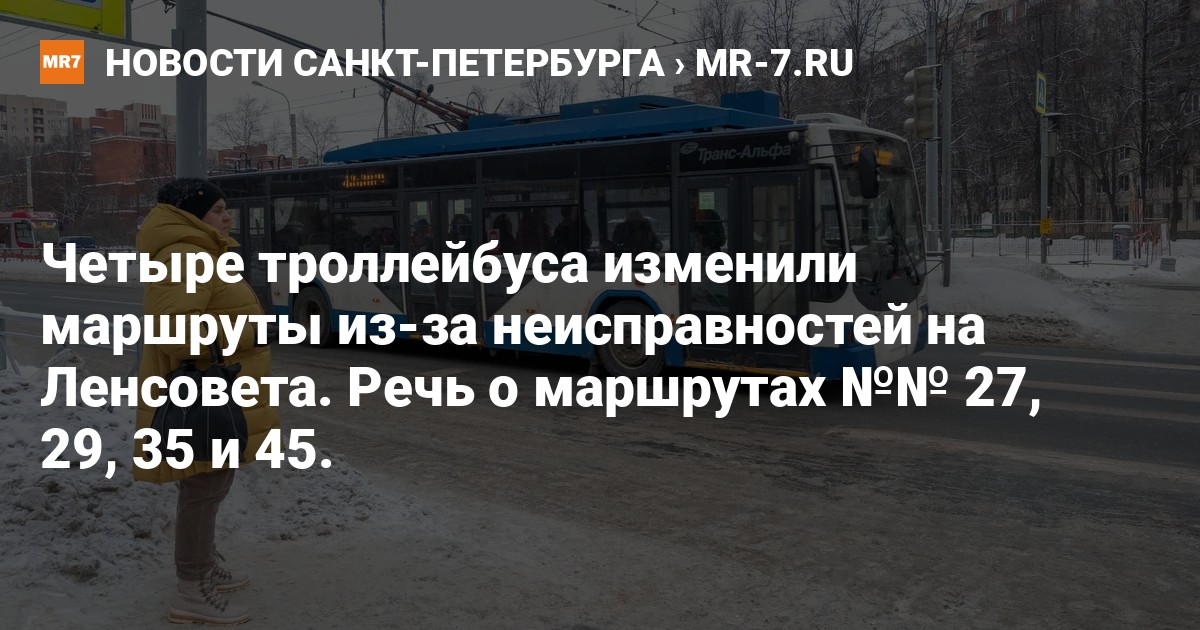 Троллейбусные маршруты № 27, 29, 35 и 45 временно изменили свои маршруты в связи с неисправным транспортом на улице Ленсовета, сообщают в пресс-службе «Организатора перевозок».