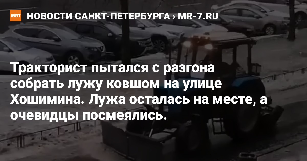 В Выборгском районе Петербурга накануне заметили интересную картину: водитель трактора пытался с разгона собрать лужу ковшом на тротуаре на улице Хошимина. Видео с места событий поделились в группе «Питер | Читай Пиши Люби» в соцсети «ВКонтакте».