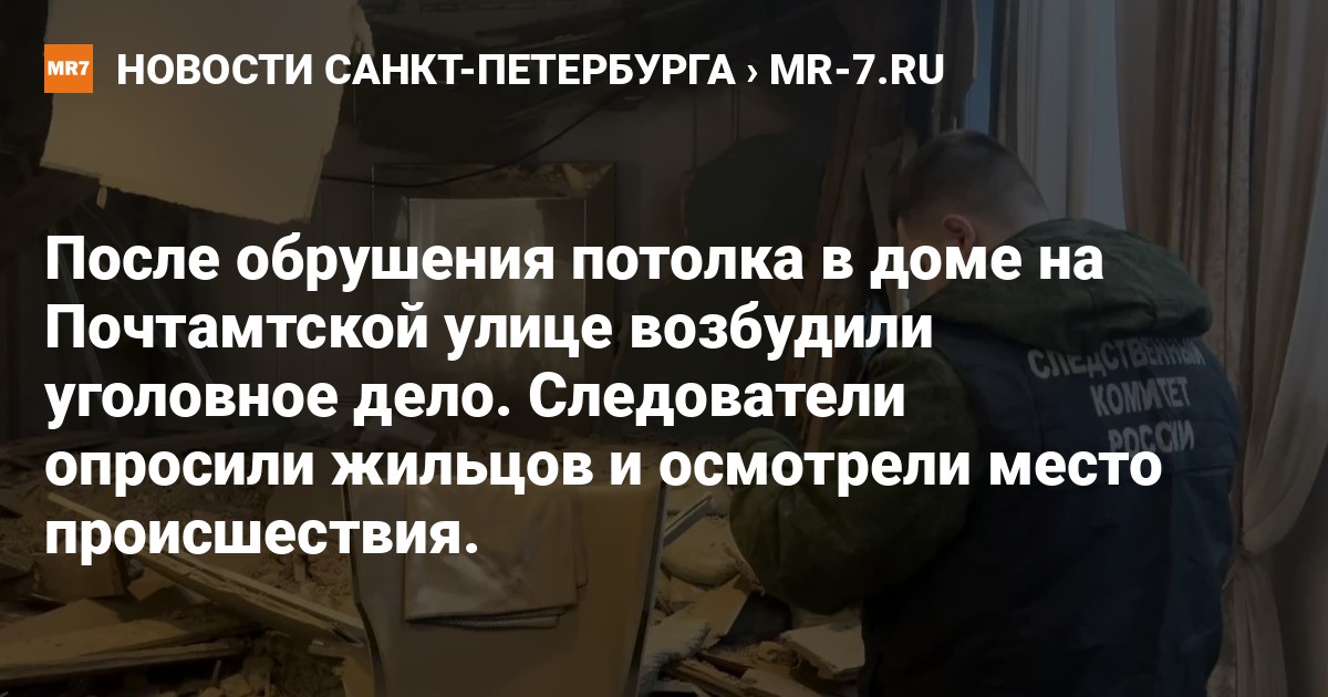 Следственный комитет возбудил уголовное дело по факту обрушения потолка в одной из квартир доходного дома Китнера в Адмиралтейском районе, сообщили в пресс-службе ГСУ СК РФ по Петербургу.