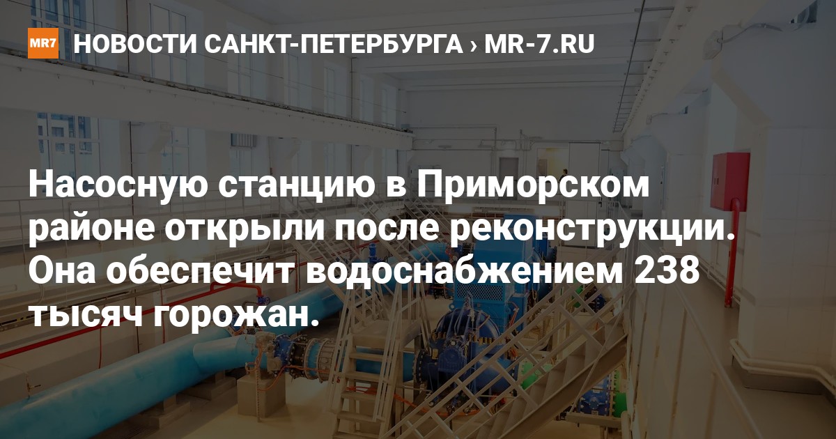 Приморскую насосную станцию ввели в эксплуатацию в 1974 году. Сегодня она обеспечивает водоснабжением 238 тысяч петербуржцев. Деятельность станции покрывает более 500 жилых домов, 73 объекта социальной инфраструктуры и девять промышленных объектов. ПНС обслуживает зону, ограниченную Невой, Кантемировской улицей, Шуваловским проспектом, проспектом Испытателей и Комендантским проспектом.