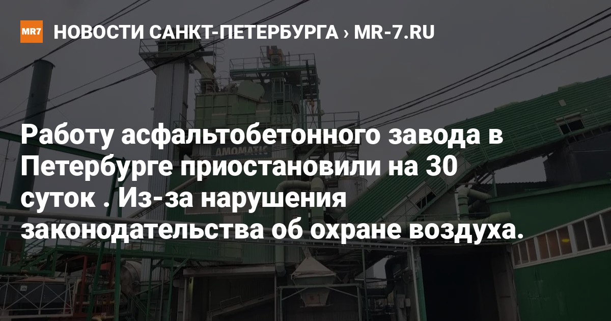 Работу асфальтобетонного завода в Петербурге приостановили на 30 суток из-за нарушения закона об охране атмосферного воздуха, поделились 26 января в пресс-службе Росприоднадзора.