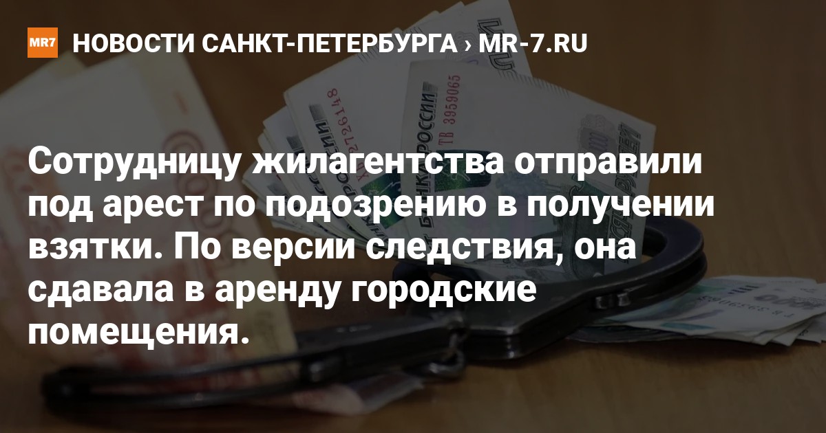Октябрьский районный суд отправил под домашний арест сотрудницу жилищного агентства из Петербурга, подозреваемую в получении взятки, сообщает объединённая пресс-служба городских судов.