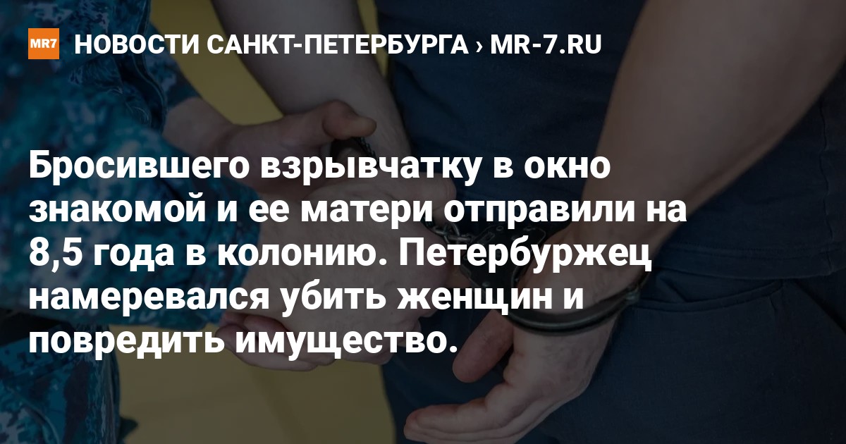 Петербуржца, который бросил взрывчатку в окно квартиры, где жила его знакомая со своей матерью, приговорили к 8,5 года лишения свободы в исправительной колонии строгого режима, сообщает 1 февраля пресс-служба Следственного комитета по Петербурга.