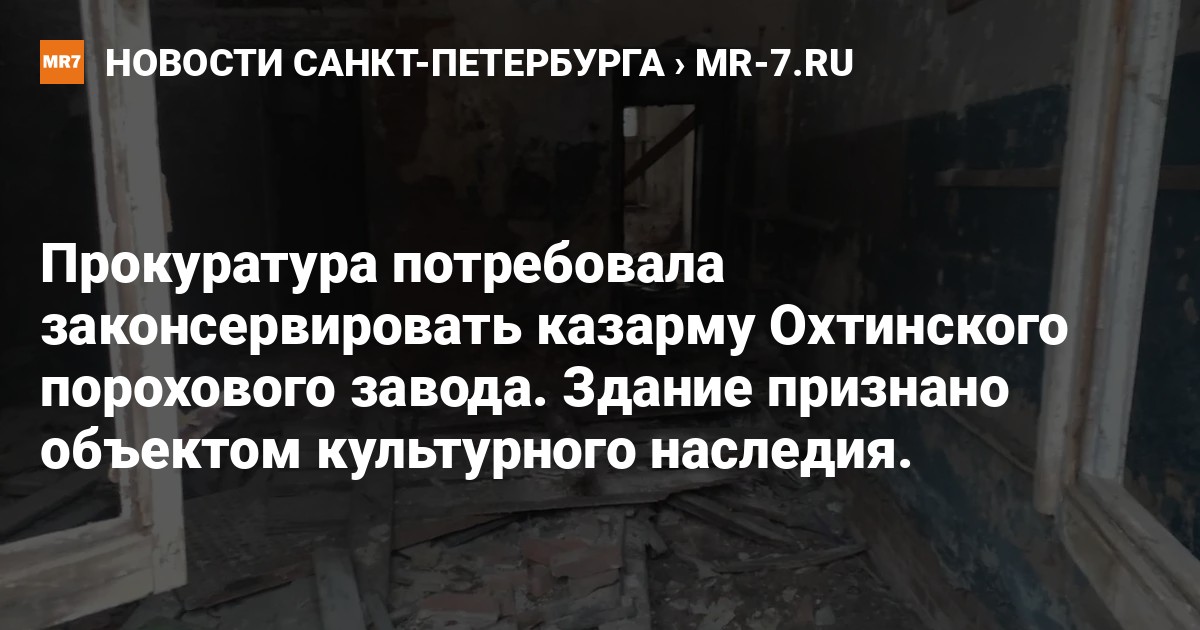 Прокуратура Красногвардейского района потребовала провести консервацию заброшенного здания офицерской казармы служителей Охтинского порохового завода, сообщают в пресс-службе ведомства.