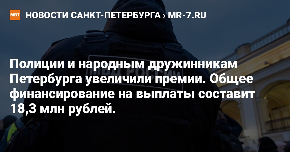 Количество премий за активное участие в охране общественного порядка в Петербурге увеличили до 110 штук — по 24 тысячи рублей каждая.