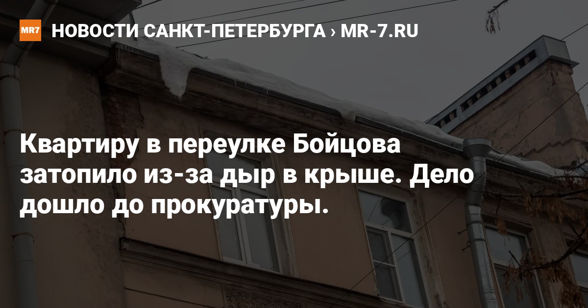Прокуратура Адмиралтейского района Петербурга потребовала отремонтировать крышу дома № 6 в переулке Бойцова: здесь затопило квартиру из-за отсутствия капительного ремонта кровли.