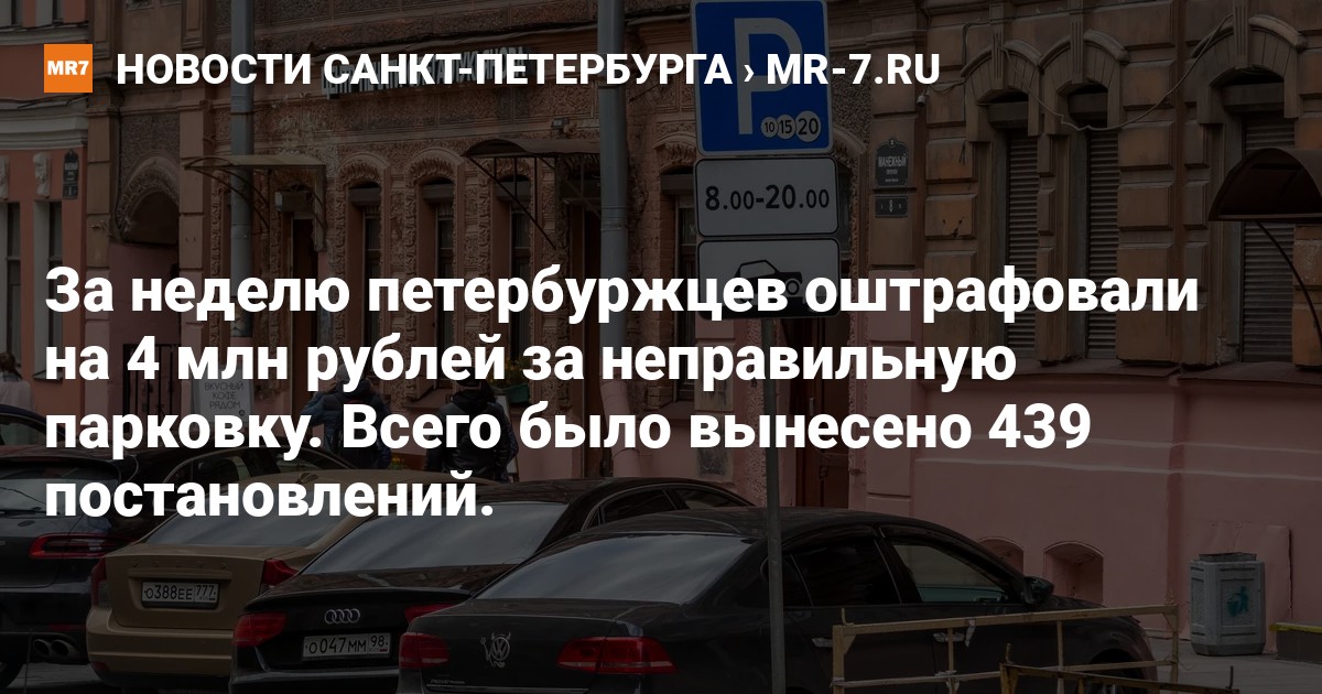 За последнюю неделю в Петербурге вынесли 439 постановлений за неправильную парковку, в том числе 20 в отношении юридических лиц. Общая сумма штрафов составила 4 млн 257 тысяч рублей, сообщает пресс-служба СПб ГКУ «Управление по мониторингу».