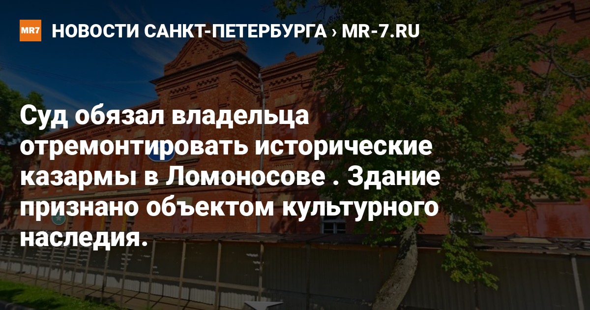 Петродворцовый районный суд обязал собственника казарм Офицерской стрелковой школы в Ломоносове провести консервацию и ремонт здания, сообщает объединённая пресс-служба судов Петербурга.