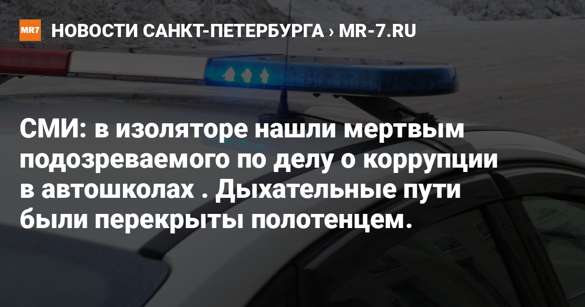В изоляторе временного содержания Московского района Петербурга найден мертвым один из подозреваемых по делу о коррупции в автошколах города, пишет 17 февраля 78.ru.