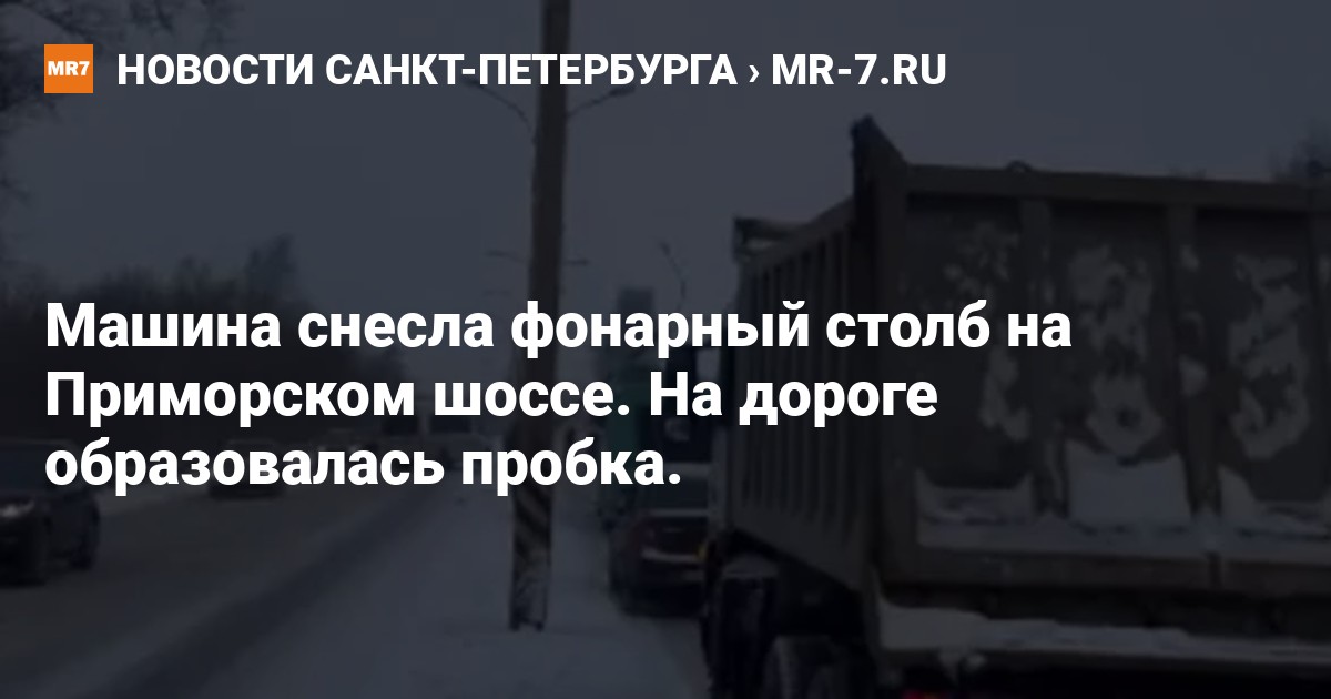 На Приморском шоссе автомобиль врезался в фонарный столб и повалил его, сообщили очевидцы в Telegram-канале «Мегаполис».