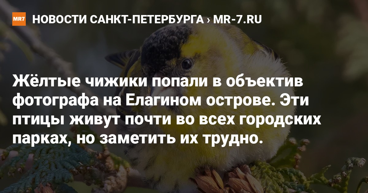 Петербургский фотограф Антон Кубышкин запечатлел в парке культуры и отдыха имени Кирова на Елагином острове жёлтых чижиков — тех самых, которым установлен памятник на набережной Фонтанки и про которых поётся в шуточной песенке. Снимками фотограф поделился в группе «Птицы СПб и России» в соцсети «ВКонтакте».