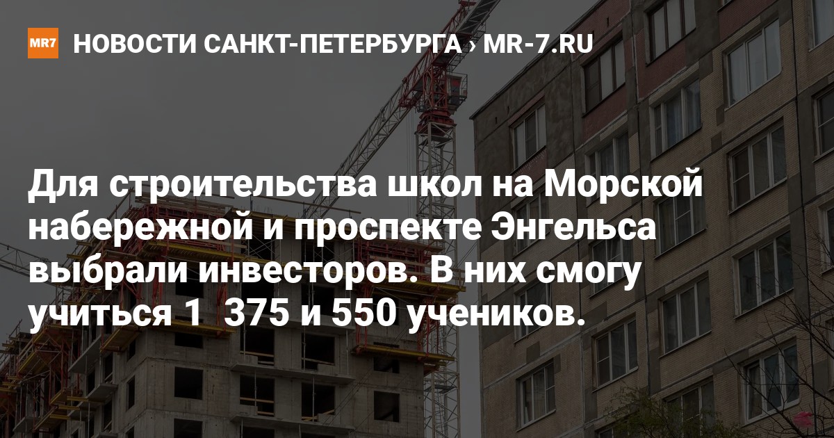 Для строительства двух школ в Выборгском и Василеостровском районах Петербурга выбрали инвесторов, сообщает 20 февраля пресс-служба Смольного.