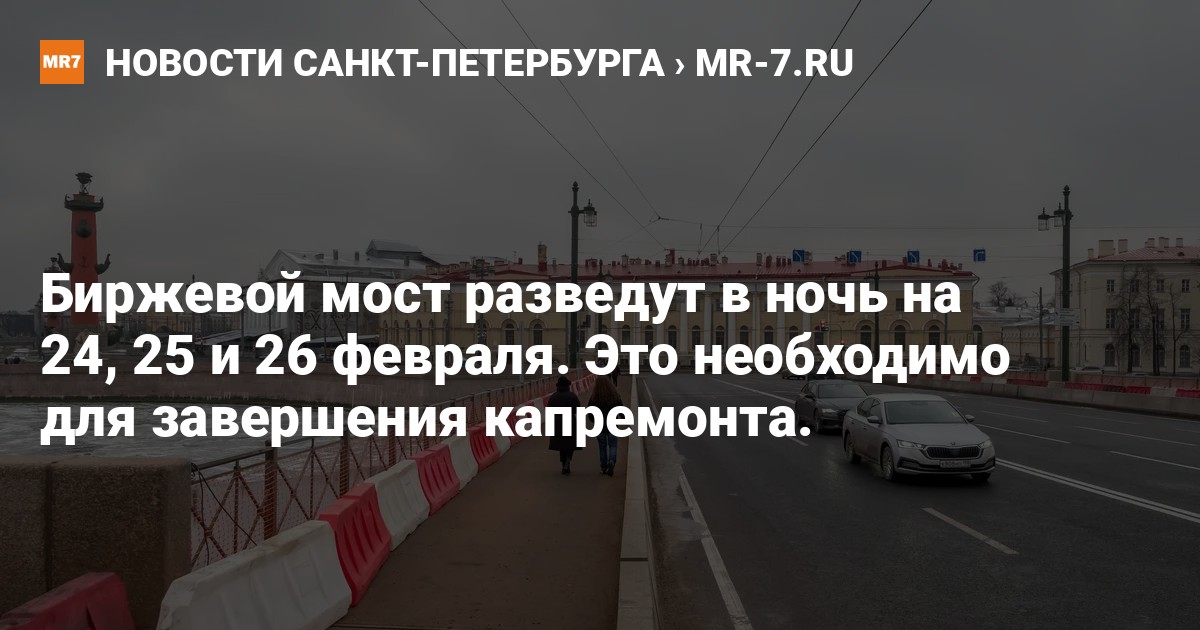 В ночь на 24, 25 и 26 февраля проведут технические разводки Биржевого моста. Как сообщили в пресс-службе СПб ГБУ «Мостотрест», здесь пройдут работы в рамках капитального ремонта переправы.