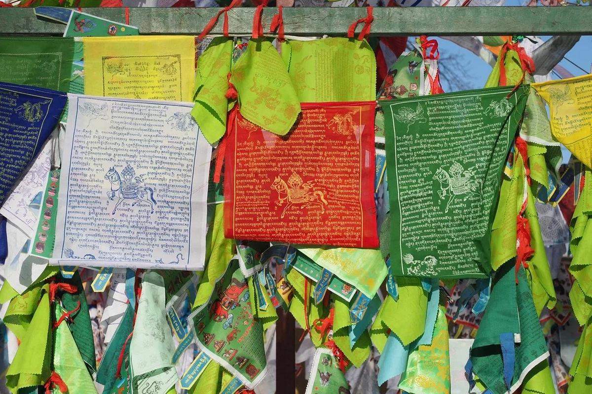 Тканевые флажки Хий морины — «Кони ветра, удачи» — важный элемент начала года. Их развешивают в специально отведённых местах. На территории у петербургского Дацана для этого отводят беседку рядом с храмом.