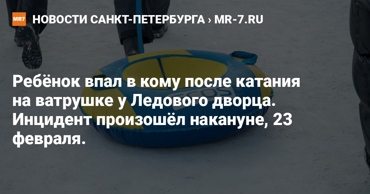 Инцидент произошёл вечером 23 февраля у Ледового дворца. Четырёхлетний мальчик вместе с папой катались на ватрушке, взятой в прокат. Первый раз скатились удачно, а во второй — врезались в дерево.