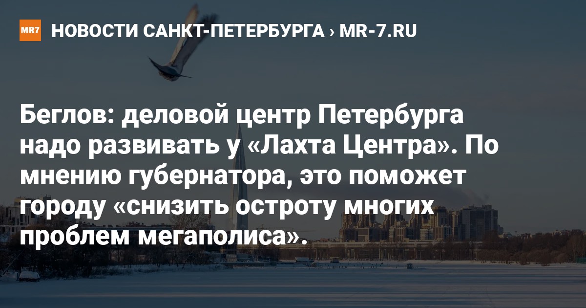 <…> Оптимальный вариант для размещения делового центра Петербурга — и по затратам для города, и по архитектуре, и по транспортной доступности — рядом с "Лахта Центром"», — сказал Беглов.