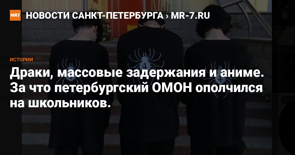 Вечером 26 февраля полиция доставила в участки около 200 подростков из торгового комплекса «Галерея». Причиной стала массовая драка — на 15-летнего школьника в черной толстовке с изображением паука набросилась толпа юношей. Как стало известно, вскоре к потасовке подключились и другие, а приехавшая на место полиция с сотрудниками ОМОНа узнавать о причинах драки не стала и доставила в отдел всех причастных. MR7 решили разобраться, как японская мультипликация из 90-х спровоцировала массовые драки в 2023 году.