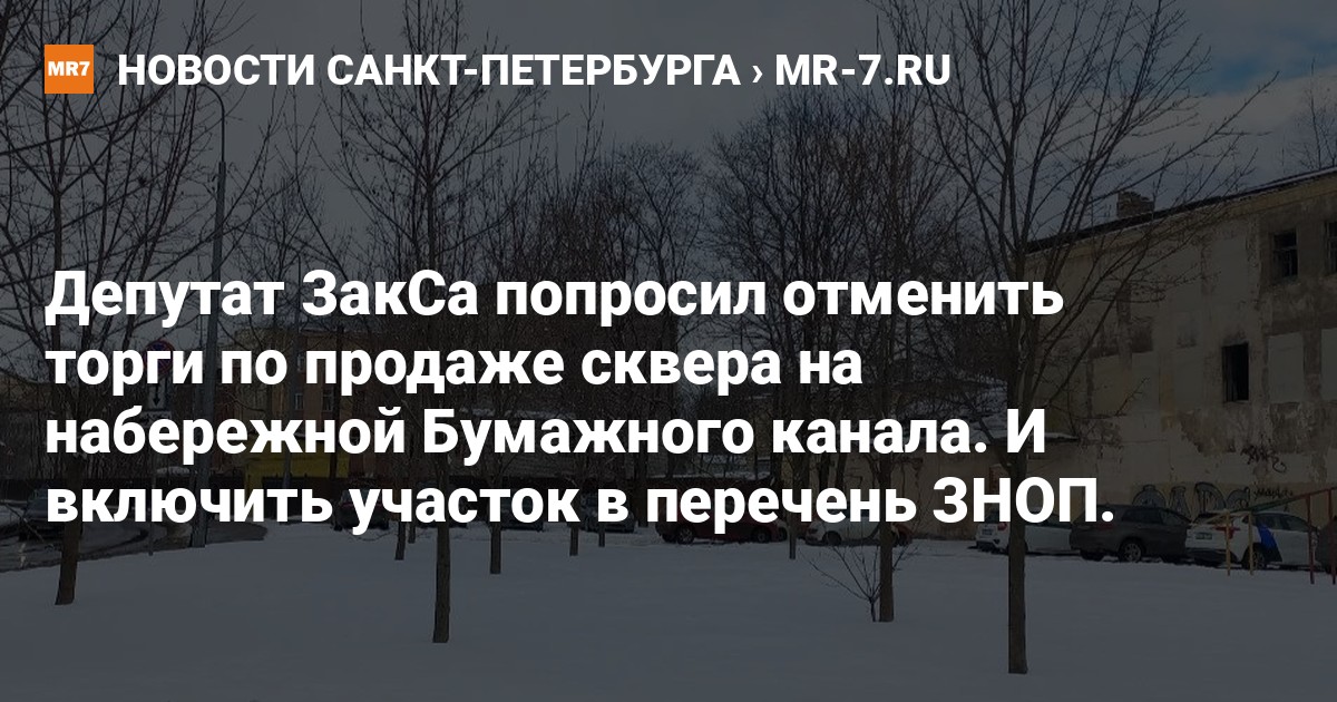 Депутат Заксобрания Петербурга от фракции «Единая Россия» Андрей Рябоконь обратился к вице-губернатору Валерию Пикалеву с просьбой отменить торги по продаже сквера на набережной Бумажного канала. Текст письма опубликован в Telegram-канале «SOS СПб СНОС».