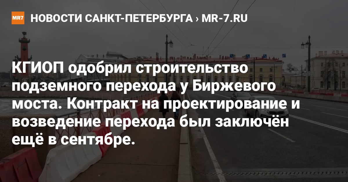 КГИОП выдал положительное заключение на строительство подземного пешеходного перехода у Биржевого моста в Петроградском районе Петербурга. Соответствующая информация появилась на сайте ведомства.