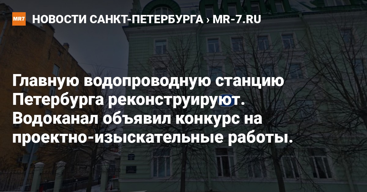 Главную водопроводную станцию на Кавалергардской улице, дом № 42, реконструирует петербургский Водоканал, конкурс на выполнение проектно-изыскательных работ появился на портале госзакупок.