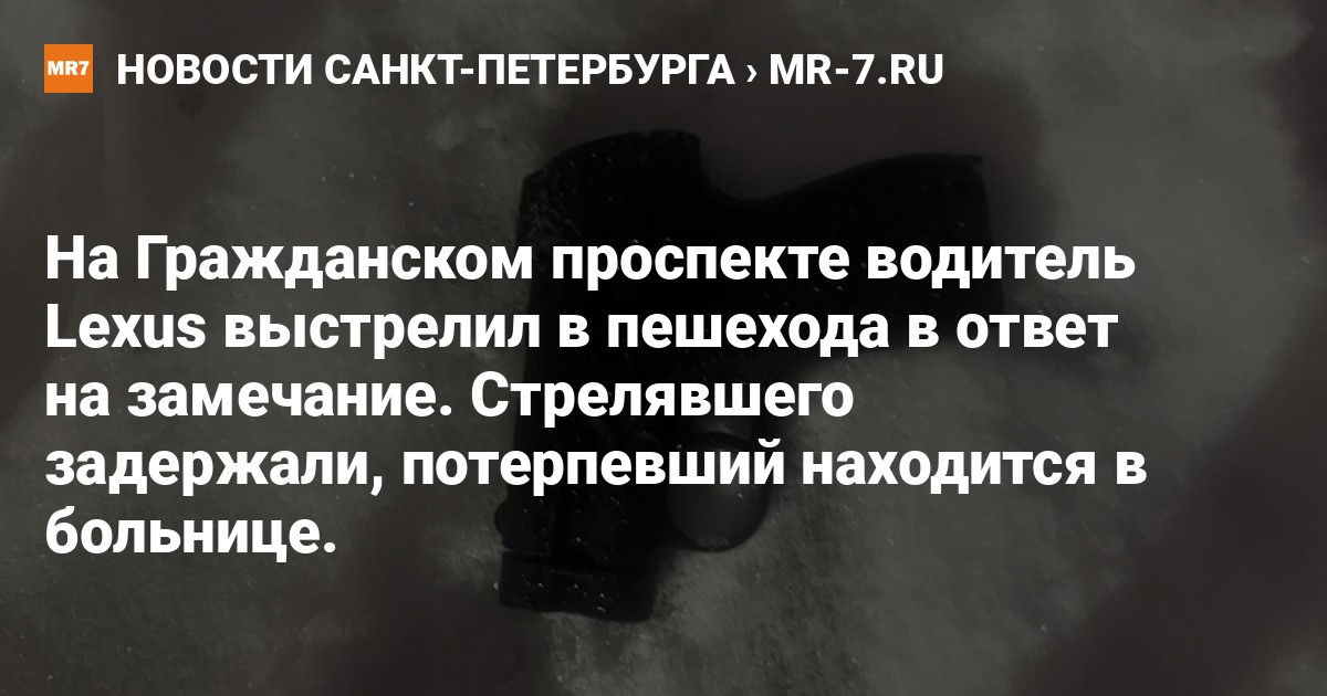 Вечером 11 марта словесный конфликт на Гражданском проспекте между водителем Lexus и пешеходом из-за правил дорожного движения закончился стрельбой, сообщили в ГУ МВД по Петербургу и Ленобласти.