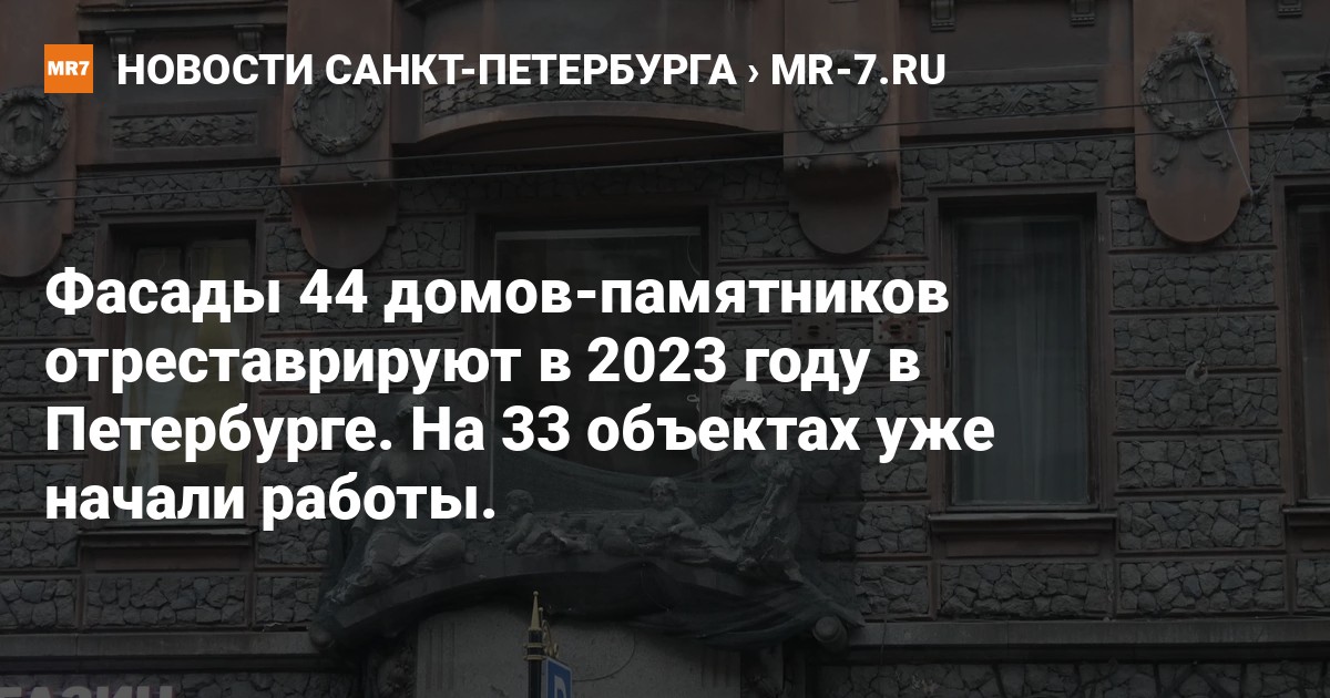 В Петербурге в 2023 году отреставрируют фасады 44 домов, признанных памятниками архитектуры. Как сообщили в пресс-службе Смольного, на 33 из объектов уже идут работы.