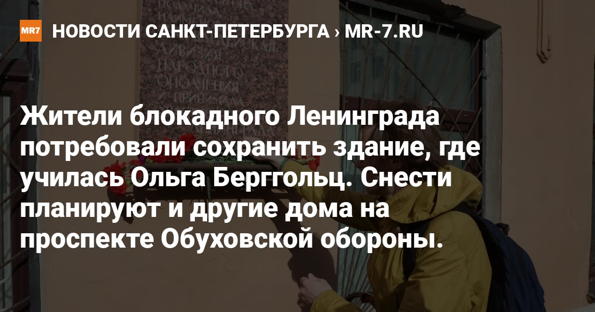 Жители блокадного Ленинграда записали обращение с требованием защитить здание на проспекте Обуховской обороны, дом № 54, где училась поэтесса Ольга Берггольц.