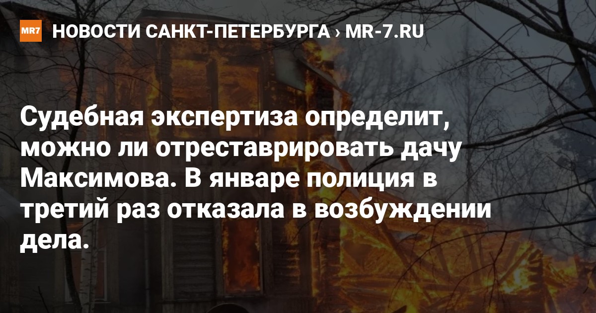 В январе 2023 года отделение МВД по Петродворцовому району уже в третий раз отказало в возбуждении уголовного дела по части 1 статьи 243 УК РФ (уничтожение или повреждение объектов культурного наследия) из-за пожара на даче Максимова. Комитет подал жалобу на отказ в возбуждении дела в прокуратуру Петродворцового района — ведомство уже в третий раз её удовлетворило.