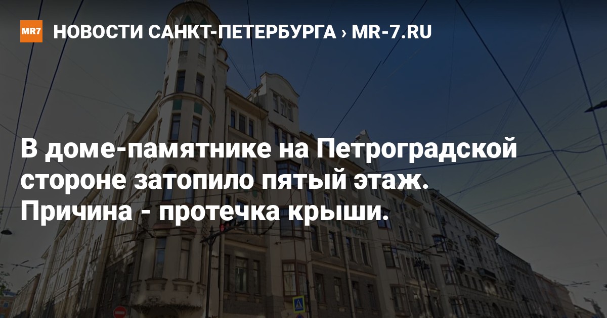 В Петроградском районе протекла крыша у дома, признанного памятником культурного наследия — в доходном доме И.Ф. Алюшинского на Большом проспекте П.С., дом № 69.