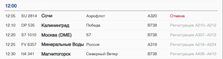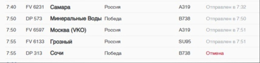 Согласно данным онлайн-табло, утром не вылетели самолёты авиакомпаний «Победа» и «Аэрофлот».